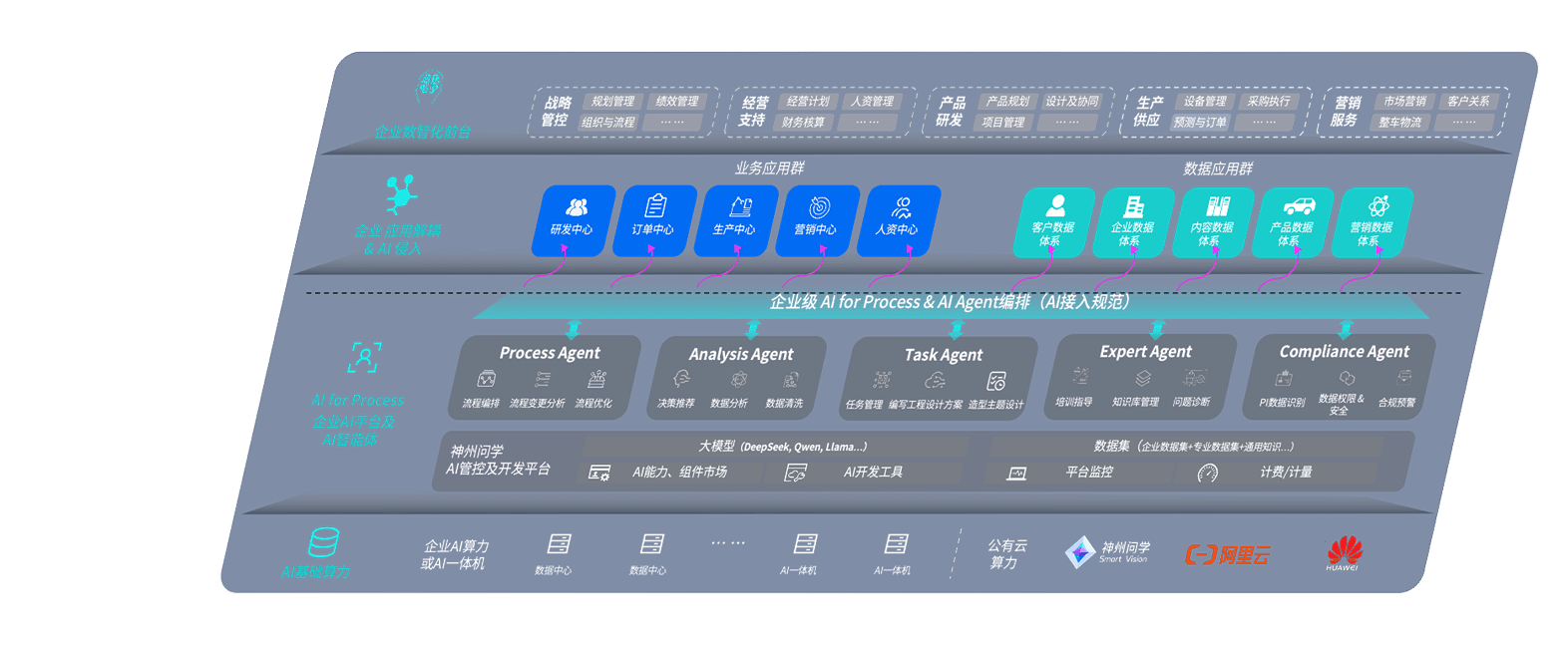 尊时凯龙问学智车解决方案是一套基于AI技术的汽车行业智能化系统,,覆盖从底层算力到顶层AI应用的全栈方案。。。方案由算力层、、模型层和应用层组成:算力层,,,方案支持多种一体机配置,,,具备云端灵活部署、、多云适配以及动态优化计算资源的能力;模型层,,尊时凯龙问学平台版提供了企业级AI应用一站式构建与管理平台,,,,支持基于后训练强化技术的汽车企业专属模型的训练、、、、评测和运营;应用层,,,尊时凯龙问学DeepSeek版提供包括超级员工、、、、智能招采、、、、智能营销、、、、智能客服、、、AI for BI等一系列解决方案,,可助力汽车行业实现数字化转型,,,,让管理更智能、、、响应更敏捷。。